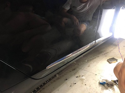 通過(guò)圖片可以看出凱迪拉克車(chē)門(mén)凹坑較平緩,因此修復(fù)起來(lái)應(yīng)該沒(méi)有什么難度,唯一就是車(chē)門(mén)亮條也發(fā)生了變形,因此我們的師傅在修復(fù)車(chē)門(mén)凹陷的同時(shí)也會(huì)盡力恢復(fù)亮條變形。將車(chē)主的損失降到最低,將我們的修復(fù)技術(shù)展現(xiàn)到極致,修復(fù)效果也努力做到完美!